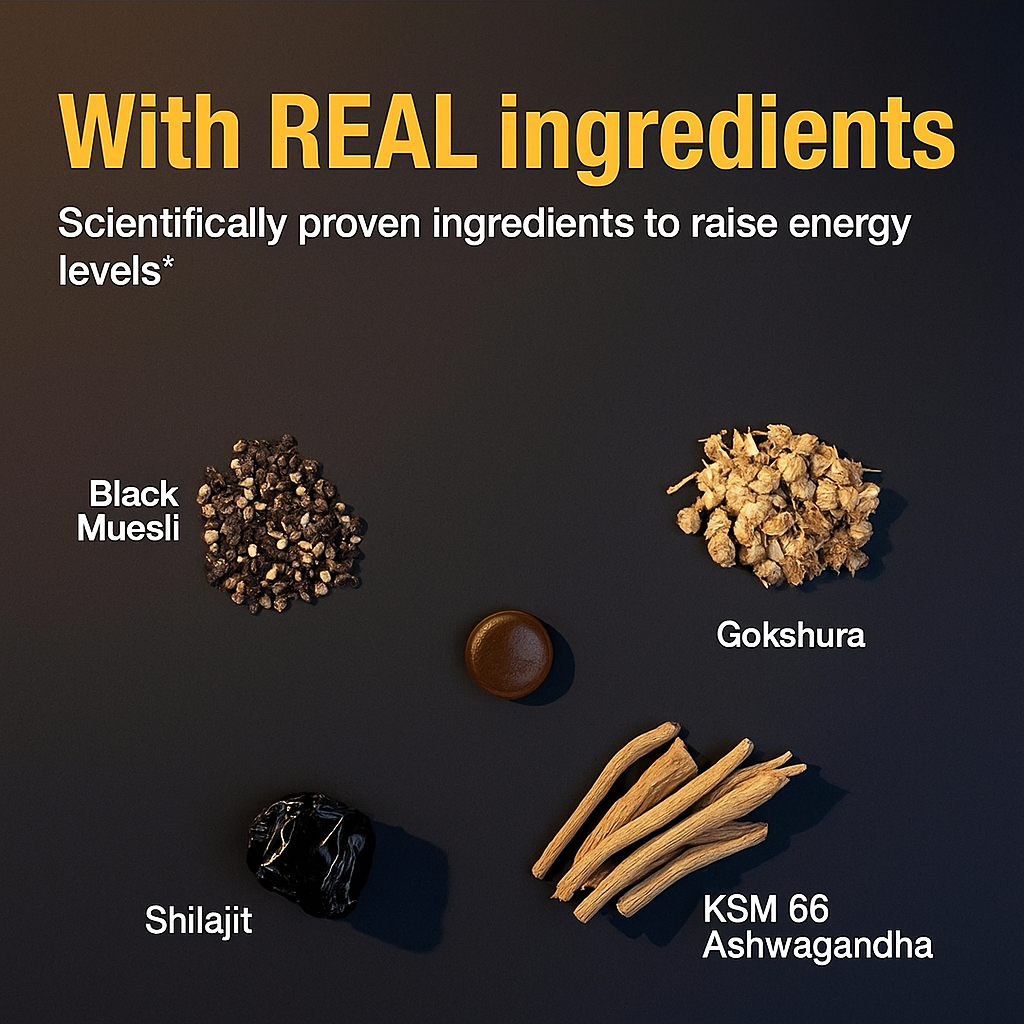 Our Shilajit Gummies are designed to naturally boost energy, stamina, and endurance, while also supporting testosterone levels, recovery, and overall vitality. With powerful ingredients like Shilajit, Ashwagandha, Black Musli, and Gokshura, they help you perform better in the gym, recover faster afterward, and feel more confident and energized in your daily life.